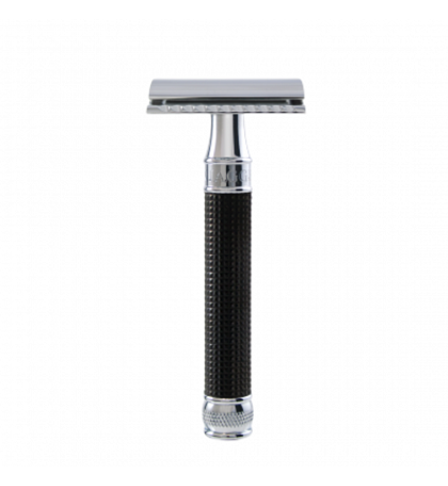 Ручка окрашена в черный смолянистый цвет. Особенность ручки заключается в использованном материале и покрытии. Ребристая поверхность дополнена алмазным эффектом, обеспечивающим больший контроль и отличное сцепление бритвы с мокрой рукой.